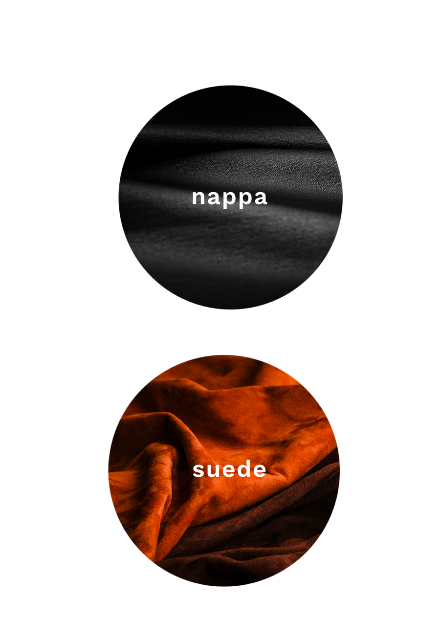 We chose to use solely ‘Dipped Nappa leather’ : the most refined, supple and soft quality of leather.