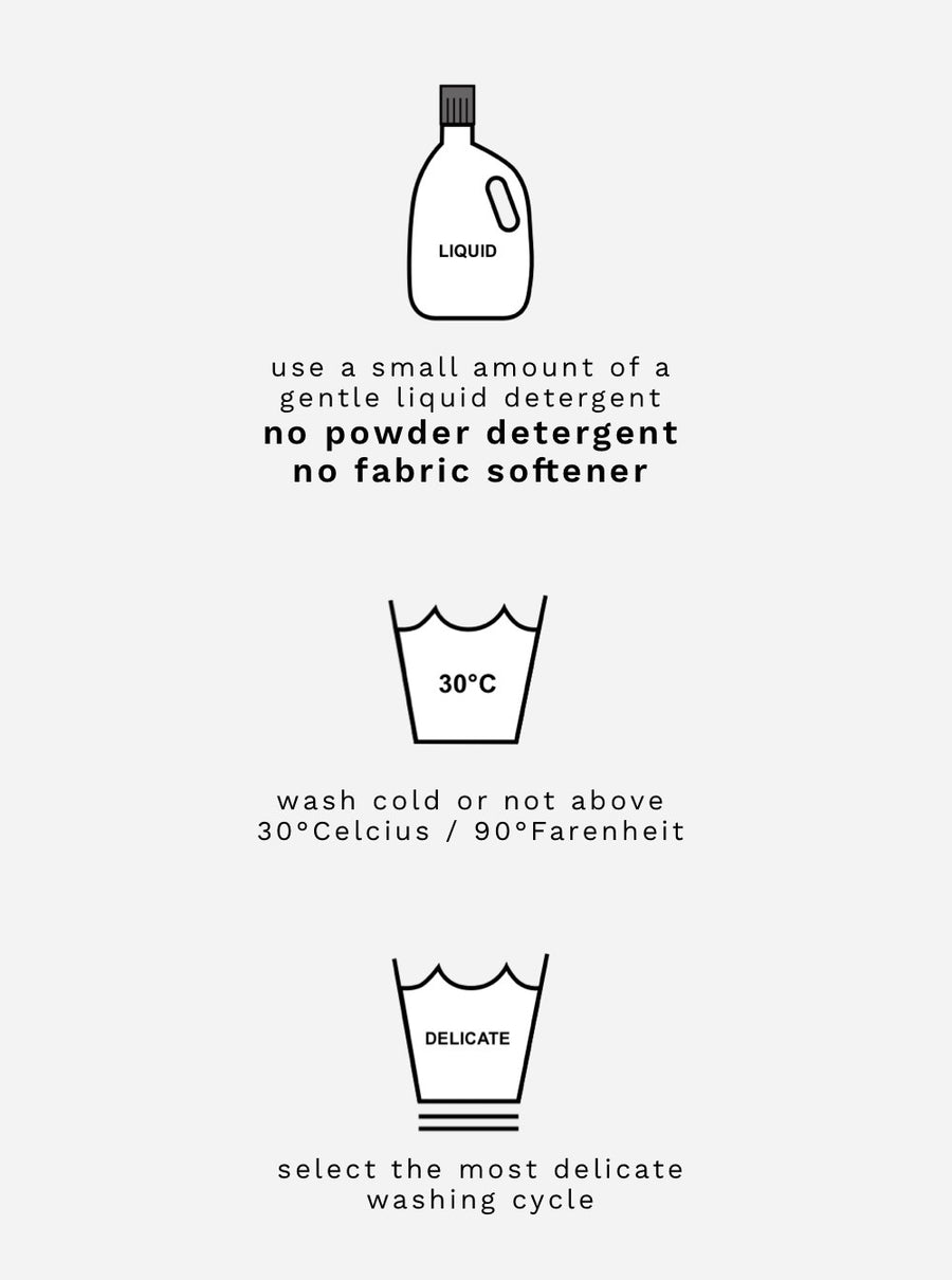 BE AWARE that machine washing will ALTER THE ASPECT and FEEL of your leggings.